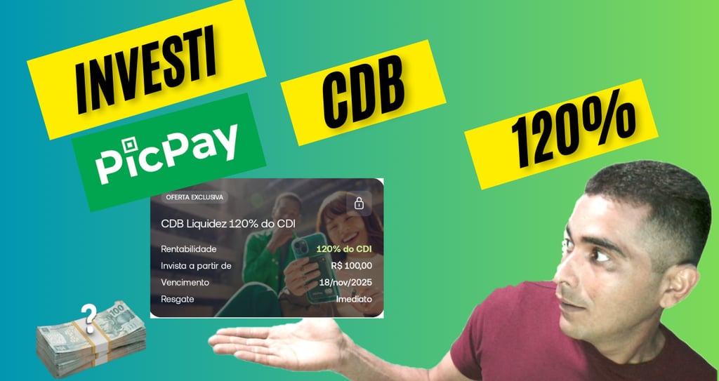 Opção IMPERDÍVEL no PicPay: CDB Pagando 120% do CDI! 🤑 Quer turbinar sua grana de forma segura e com um rendimento INCRÍVEL? 🤔 Descubra neste vídeo como aproveitar o CDB que está pagando 120% do CDI no PicPay! 🚀 Uma oportunidade que pode fazer seu dinheiro crescer muito mais do que a poupança tradicional. 💰 ✅ Neste vídeo você vai aprender: O que é CDB e como ele funciona no PicPay. Por que 120% do CDI é uma taxa EXCELENTE. O passo a passo para investir nesse CDB pelo aplicativo. Quais são os riscos e as vantagens dessa aplicação. Simulações de quanto seu dinheiro pode render! Não perca essa chance de fazer seu dinheiro trabalhar para você! Assista agora e comece a investir com alta rentabilidade no PicPay. 😉 🔔 ATIVE AS NOTIFICAÇÕES para não perder nenhum vídeo sobre investimentos e finanças!