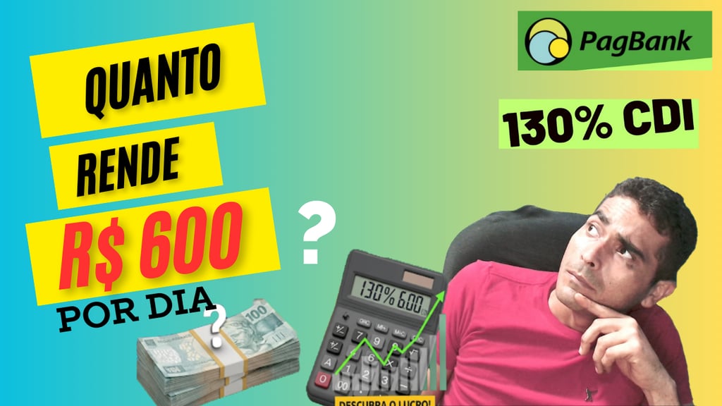Você já se perguntou quanto R$600 investidos por dia podem render em uma das opções mais vantajosas do mercado? Ne vamos mergulhar nos detalhes do CDB de 130% do CDI do PagBank! Mostraremos na prática: Como funciona esse tipo de investimento. Na pratica nos sabemos que a taxa esta variando entre 14% a 15% ao ano a 130% cdi então vamos aos cálculos 15%600=90a : 12m =7,5 : 20d=0,37 Então com essa conta nos sabemos quanto rende R$ 600,00 por ano que e R$90,00 descontando 22,5% de Imposto de Renda fica R$70,00 Então R$ 600,00 em um ano investido CDB 130% rendera R$70,00 fora o IR A rentabilidade diária, mensal e anual de R$600 aplicados no CDI 130%. As vantagens e desvantagens de investir nessa modalidade. O passo a passo para fazer o seu dinheiro render mais no PagBank. Descubra se vale a pena investir nesse CDB e veja o potencial de crescimento do seu dinheiro com uma taxa de retorno que supera a maioria das opções. Não se esqueça de se inscrever no canal para mais dicas de finanças e investimentos! Link para baixa o App da pagbank com cashback indicapagbank.page.link/kDsSRwgAexcejUa17